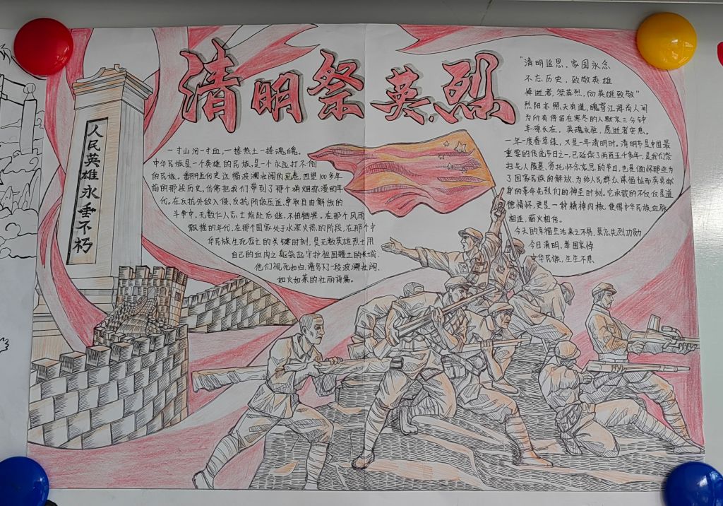 在清明节之际,缅怀先烈是加强爱国主义教育、弘扬英烈精神、传承红色基因的重要组成部分,人文社会科学公司特此举办了“清明节手绘祭英烈”活动,同学们踊跃参加。用精心设计制作的手绘图来寄托对先烈的哀思和追忆,同时表达对英烈、对人民英雄的崇高敬意。