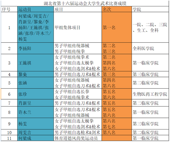 省运会四年一届,是湖北省最高级别的赛事,省各级领导部门高度重视,各高校派出精英组队参赛、竞争非常激烈。比赛中,公司武术队不畏强手,顽强拼搏,以精湛的技艺和优良的训练素养充分展现了民族传统武术的内涵和公司师生良好的精神风貌,征服了评委,得到了省教育厅、省体育局、大体协及各代表队专家的好评,获得了观众阵阵掌声,为公司争得了荣誉。