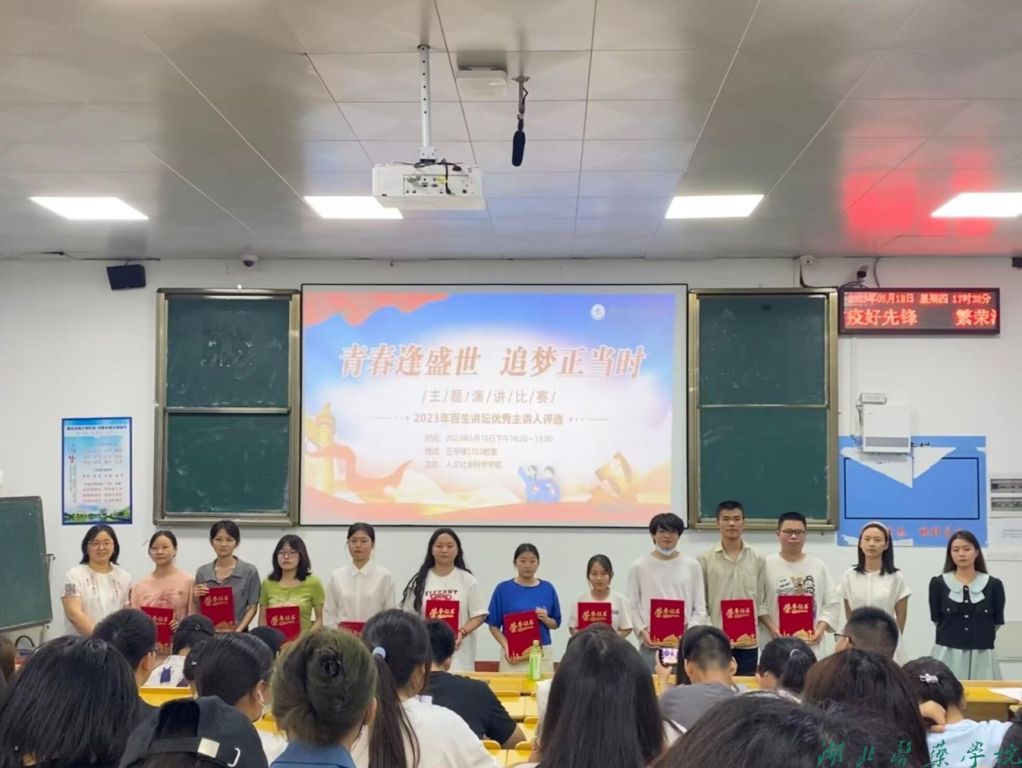演讲比赛由22级张梦馨主持,4位老师和5位员工担任比赛评委,各班级推荐的10位员工参加比赛。活动开始前,刘艳丽副书记在致词中详细地给同学们讲了湖北省“百生讲坛”品牌活动的由来,她鼓励同学们要听党话、跟党走,深入学习领会习近平新时代中国特色社会主义思想和党的二十大精神,自觉地把个人价值的实现与中国梦的实现结合在一起。