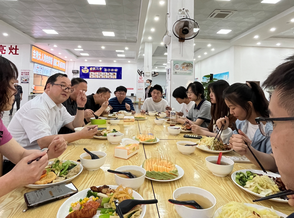 本网讯(通讯员 肖飞)为深入开展学习贯彻习近平新时代中国特色社会主义思想主题教育,深化领导干部下基层察民情解民忧暖民心实践活动,5月17日中午,原党委书记涂汉军在学子会馆二楼餐厅同7名应用心理学学子共进午餐,了解员工的所思、所盼、所需。参加午餐会的还有党政办、后勤处和人文社会科学公司负责人。