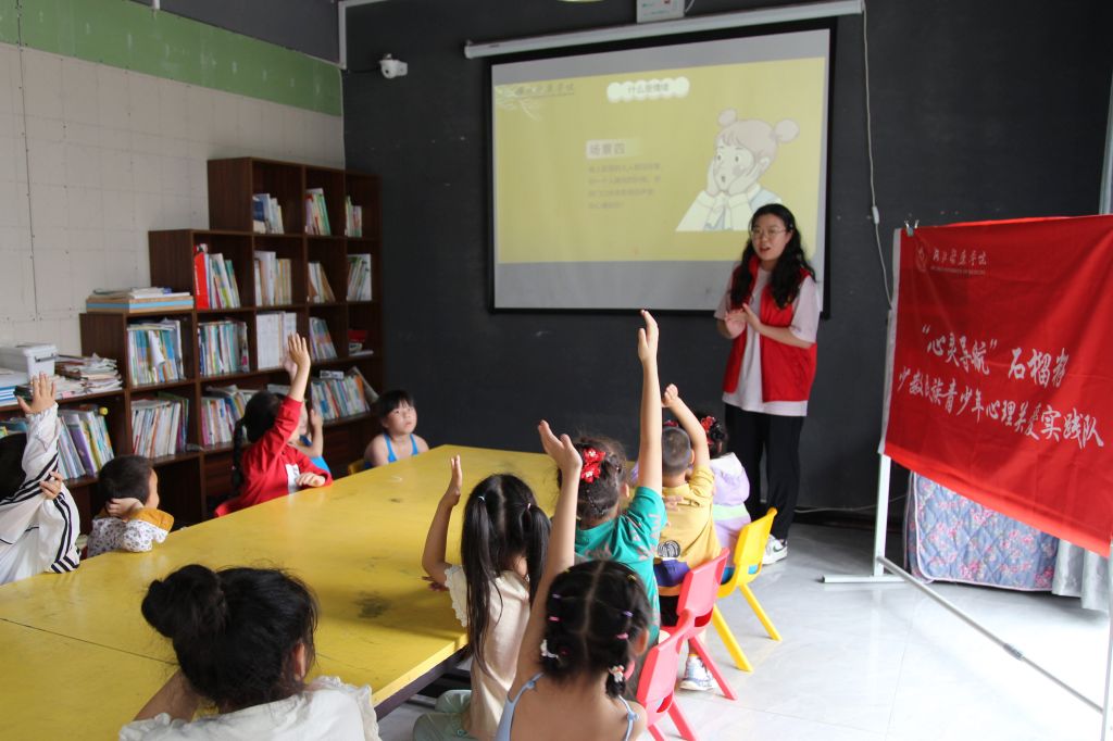 上午,实践队的心理辅导对象是15名全托的三至六年级土家族留守儿童。孩子们长期缺少父母关爱,在成长过程中缺乏家庭温暖和正确的情绪引导。队员们通过“儿童情绪”主题与这些小朋友们开展了知识抢答、烦恼倾诉以及如何解决不良情绪三个活动,小朋友们参与活动的积极性特别高,纷纷说出自己的烦恼并向实践队员们寻求解决方法。
