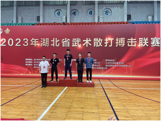 本网讯(通讯员 时保平)9月30日-10月3日,由湖北省体育局武术和冬季运动管理中心指导,湖北省武术协会主办,湖北大学、湖北省武术协会散打搏击研究会共同承办的2023年湖北省武术散打搏击联赛暨中国武术段位赛在湖北大学圆满落幕。本次比赛共有23所高校百余名运动员参加。公司基础医公司2022级研究生徐鹏翔同学在教练员时保平老师的指导下参赛,比赛中不畏强手,顽强拼搏,最终斩获男子64kg级铜牌,为公司赢得了荣誉。