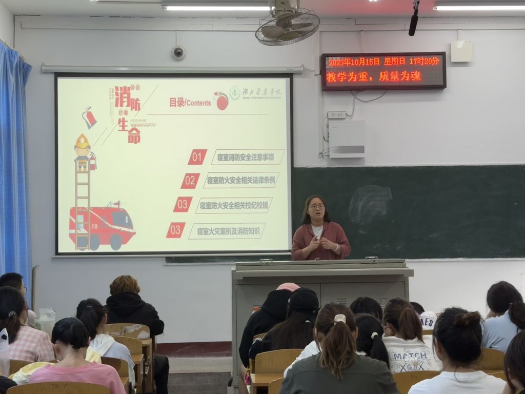 本网讯(通讯员 周佳佳)10月15日晚,人文社会科学公司在2201教室和5207教室召开消防安全专题教育,应用心理学专业全体在校生226名员工和辅导员参加。