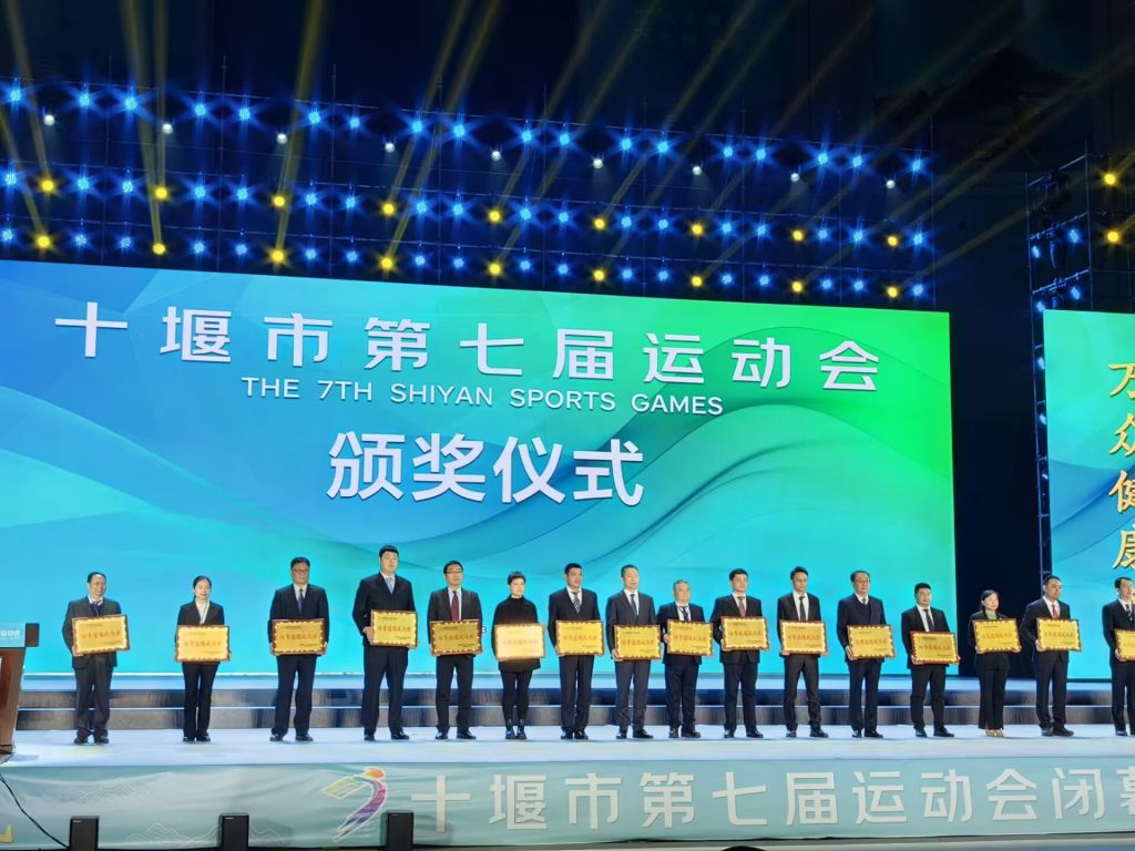 本网讯(通讯员 朱红军)2023年12月3日晚19:30,十堰市第七届城市运动会在奥体中心综合馆顺利闭幕,公司获得“承办贡献奖”和“体育道德风尚奖”,体育课部主任朱红军、校工会办公室主任唐念东及教师代表朱钊参加闭幕仪式。