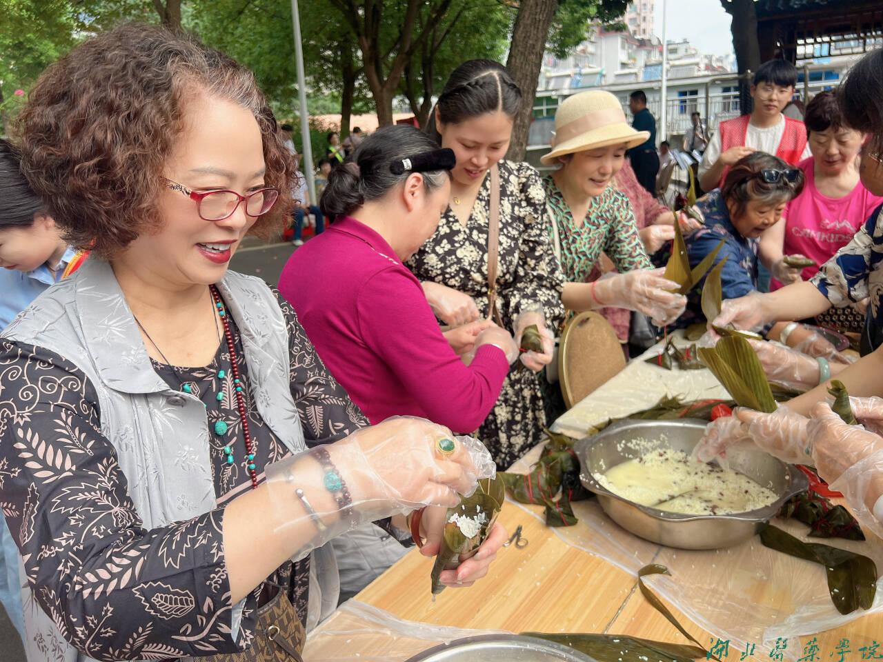 活动中,志愿者们与社区居民一起展开了包粽子比赛,极大地调动了居民对社区活动的参与热情,也增进了邻里情感。志愿者还协助居民开展缝香囊亲子手工活动,受到了社区居民的好评。