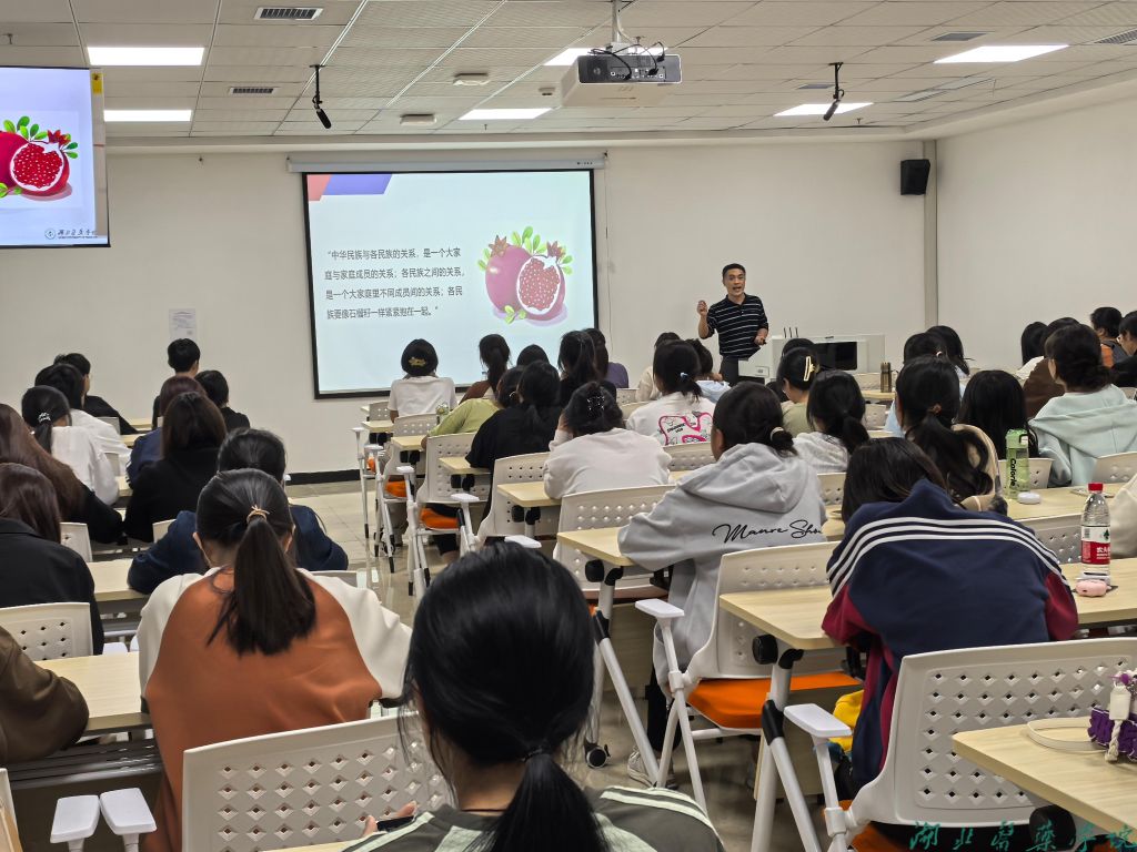本网讯(通讯员 江杉杉)为增强新生间的民族团结,铸牢中华民族共同体意识,10月11日下午,伟德国际VICTOR1946在公卫楼教室三,面向2024级应用心理学93名新生开展铸牢中华民族共同体意识教育主题班会,公司副经理孙磊博士作了题为“正确认识中华民族和中华民族共同体,新时代青年要做铸牢中华民族共同体意识的坚定践行者”的报告。
