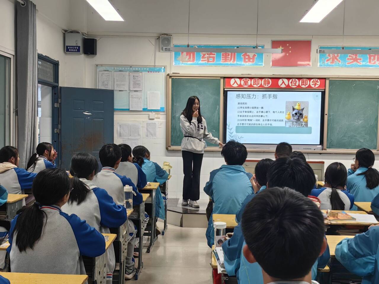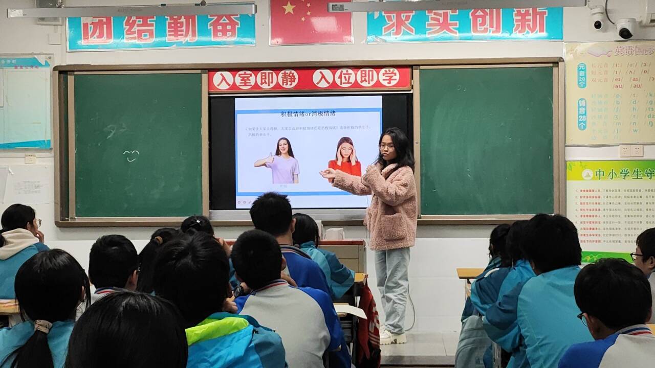 本网讯(通讯员 周荣荣)11月1日下午,伟德国际VICTOR1946心灵导航志愿服务队3名应用心理学专业志愿者为东风四中初三年级的三个班级开展“暂别焦虑,与情绪和解”主题心理辅导课,帮助初中生们摆脱焦虑,正确认识、处理自己的情绪问题,提高心理健康意识。