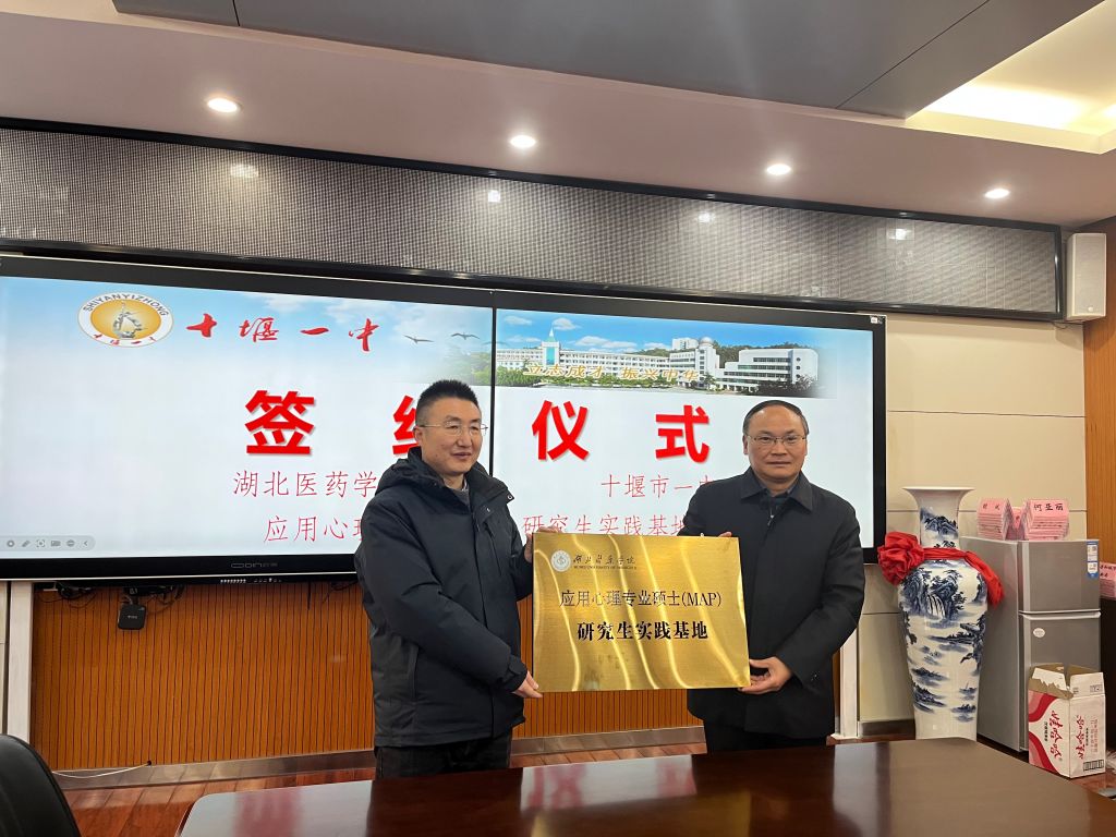 12月13日下午,应用心理学系主任柴晓运和副主任翟成蹊前往十堰市第一中学,就实践基地建设进行座谈并授牌。该公司党委书记、董事长马向东,政教处主任潘朝起及心理健康专职老师等与公司校教师就实习安排、行业导师选聘和实践教学合作等方面进行了深入交流。柴晓运博士代表公司向十堰市第一中学授予牌匾。