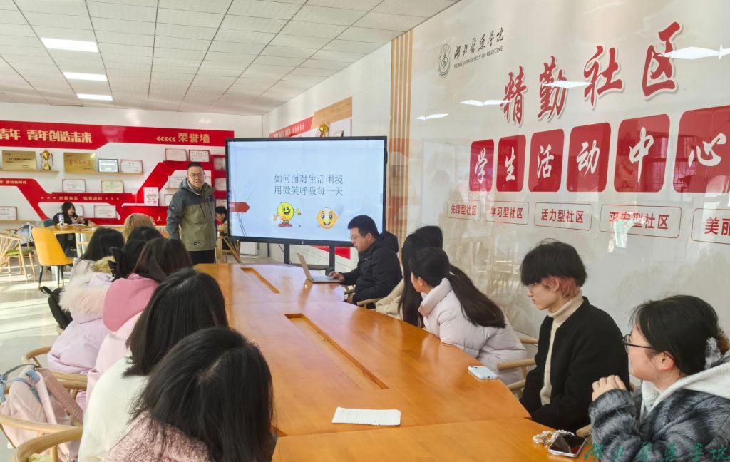 本网讯(通讯员 韩丽萍)随着期末考试的临近,校园里的紧张氛围日益浓厚。为帮助员工缓解备考压力,以积极乐观的心态面对生活中的种种困境,12月20日上午,伟德国际VICTOR1946应用心理学系张建涛博士在精勤社区员工活动中心开展了一场主题为“如何面对生活困境,用微笑呼吸每一天”的精彩讲座,受到同学们的欢迎。