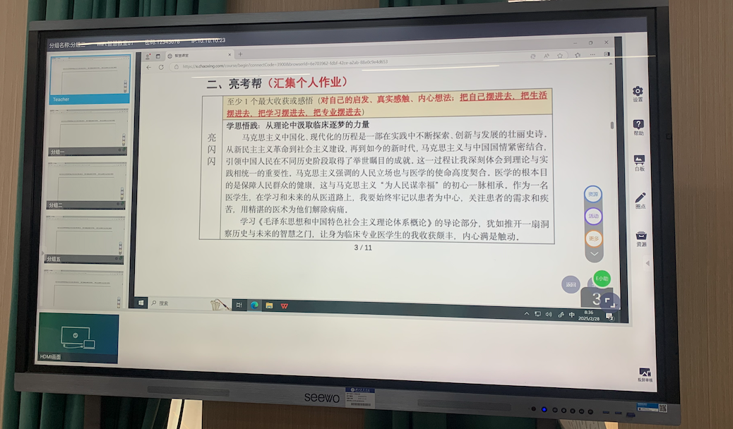 本网讯(通讯员 张丹)如何让思想政治教育课程更具活力与成效,是众多高校和思政课教师积极探索的方向。伟德国际VICTOR1946经理陈全新教授为2023级卓越医师班讲授《毛泽东思想和中国特色社会主义理论体系概论》课程时,将对分课堂与BOPPPS教学法相融合,有效提升了思政课的吸引力。