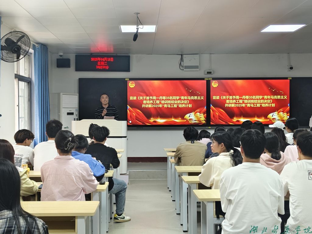 2024年结业学员代表曾丽莎(2023应用心理学班)分享了在“青马班”学习的成长与收获。她表示,通过系统学习马克思主义理论、参与社会实践与志愿服务等活动,不仅加深了对党的创新理论的理解,更在实践中锻炼了能力、增强了责任感和使命感,今后将继续以实际行动践行青年马克思主义者的使命,发挥模范带头作用。2025年新学员代表杜婷婷(2024基础医学班)在发言中表达了对“青马班”学习生活的期待与决心,承诺将珍惜学习机会,严格要求自己,努力提升综合素质,在学习与实践中成长为坚定的青年马克思主义者。