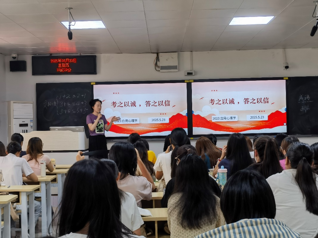 此次“考之以诚,答之以信”主题班会的开展,不仅增强了同学们的诚信意识和纪律观念,也为营造公平、公正、严肃的考试环境奠定了坚实基础。相信在即将到来的期末考试中,2023应用心理学班的同学们将以诚信为帆,以知识为桨,在考场上交出一份满意的答卷,用实际行动诠释新时代老员工的责任与担当。(审稿 孙磊)
