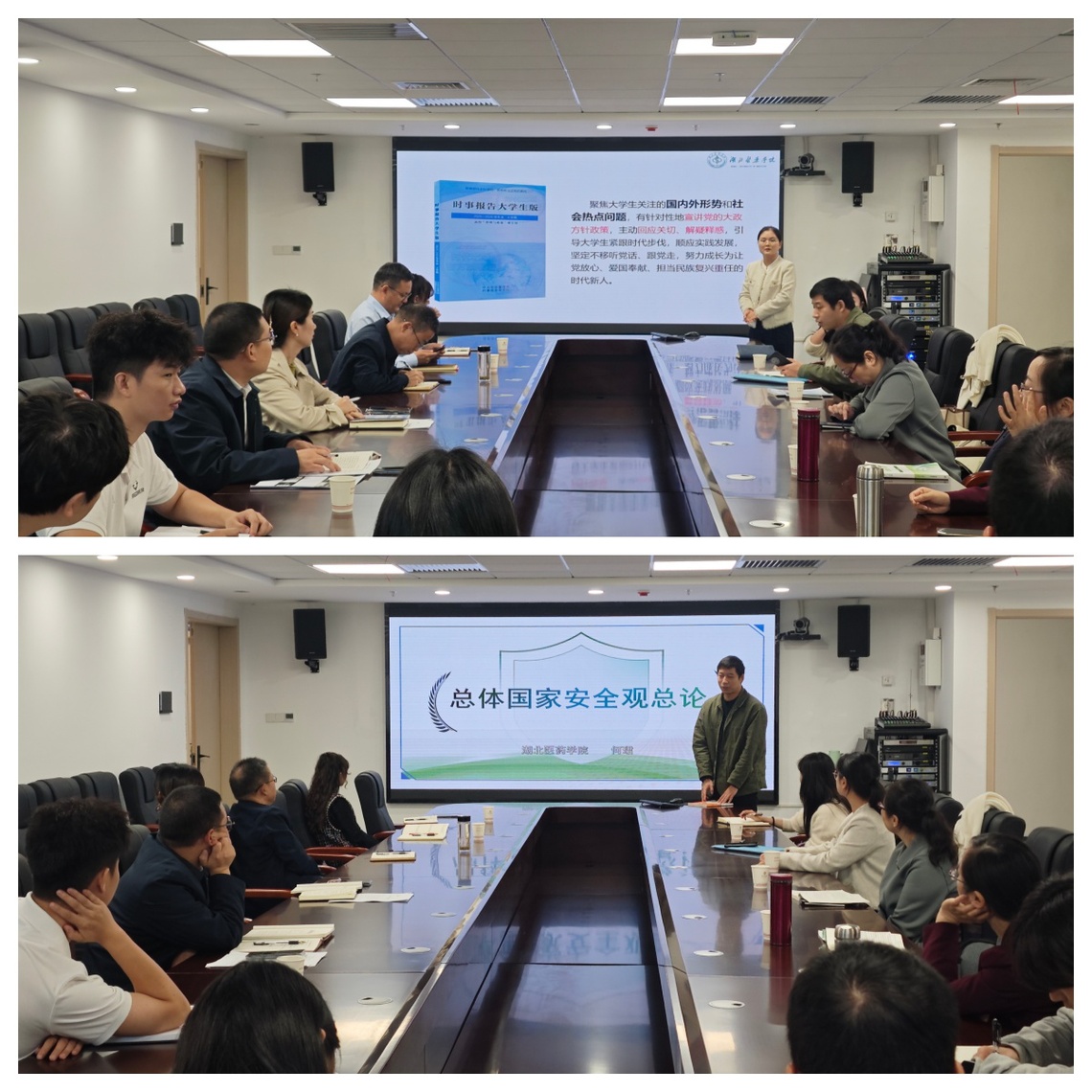交流会上,王晓燕老师围绕《形势与政策1》课程,从备课、考核、课堂活动设置等方面给出具体建议,并展示部分课件。何珺老师则介绍了《国家安全教育》课程设置情况,阐述其与《军事理论》的区别与相关性,对课程的教学内容安排、重难点把握及课堂上员工可能提出的常规问题和曾经出现的状况做出解答。两位老师分享发言后,现场老师们就学习通使用、课程考核等问题进行了互动交流。